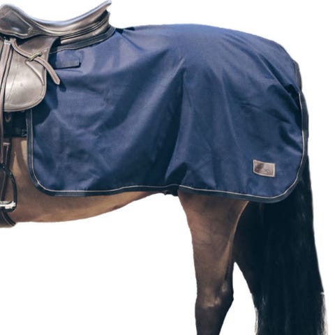 Marine blå sjabrakk i str full. Litt fugledrit på men går nok kjapt av. Lufting i toppen av sjabrakken og gummi fester der salen ligger.