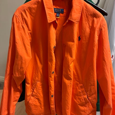 Ralph Lauren Polo jakke i oransje farge, størrelse M. Jakken er designet for menn og egner seg som ytterplagg til utendørs bruk. Materialet gir isolasjon og komfort.