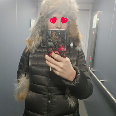 Selger superfin grønn parka med mykt rosa fôr fra merke Mr & Mrs Italy. Avtagbar fuskepels på hetten og klassiske detaljer. Står XL på lappen, men passer mest for M.
