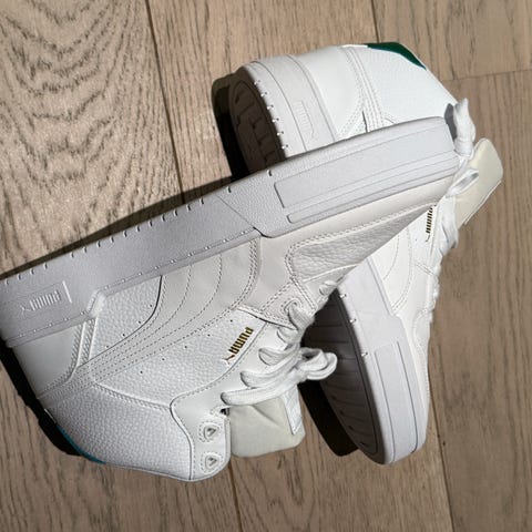 Puma Sneakers joggesko i størrelse 44, hvit farge. Skoene har en klassisk design med snøring og perforerte detaljer på overdelen. Egnet for daglig bruk og ulike fritidsaktiviteter.