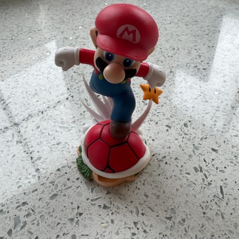 Nintendo Super Mario Luigi Figur. Figuren forestiller karakteren Super Mario i klassisk positur. Den har lyd, men treng nye batteri. Mc Donald figur. Passer som samlerobjekt eller dekorasjon.