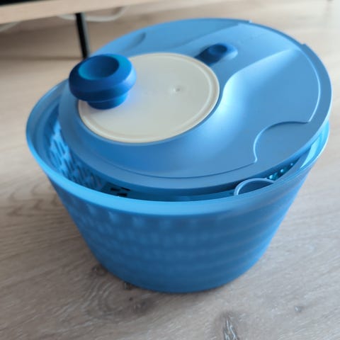 Superpraktisk salatslynge frå Tupperware. Med eige lokk til oppbevaring i kjøleskap