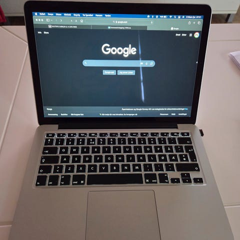 Selger en godt brukt MacBook Pro fra 2013. Dataen fungerer som den skal og er fremdeles bra respons i. Belegget på skjermen er noe slitt, se bilde 2. Synes godt når dataen er av, men synes ikke særlig når du skrur den på. Mangler en knott under, se bilde.