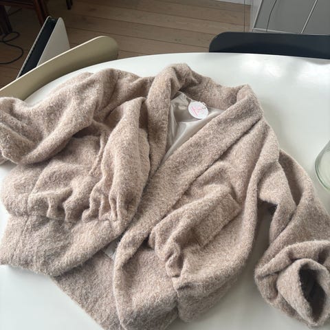 Zizzi jakke i kokt ull, svart farge, størrelse S. Glidelås foran og på lommer
