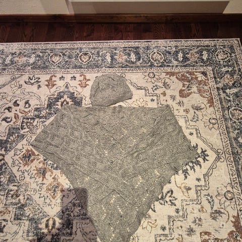 - Design: Strukturstrikk med ribbekant og et matchende skjerf