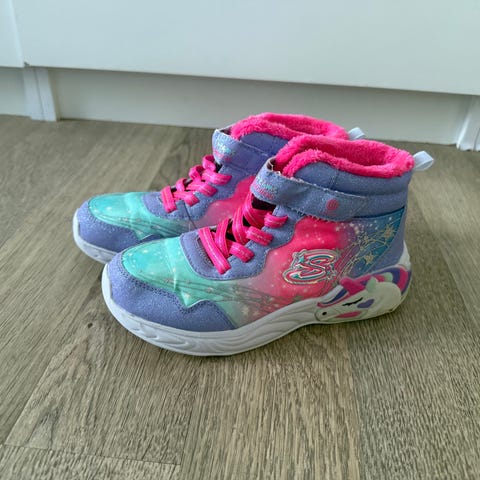 Viking barnestøvel i størrelse 32, lilla farge. Laget for jenter, egnet for bruk i vått vær og gjørmete forhold. Støvelen har en solid såle med godt grep for utendørsaktiviteter.