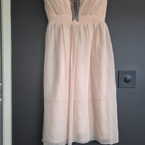 Rosa penkjole med perledetaljer over brystet. Kjøpt ny på Nelly for 1500,-