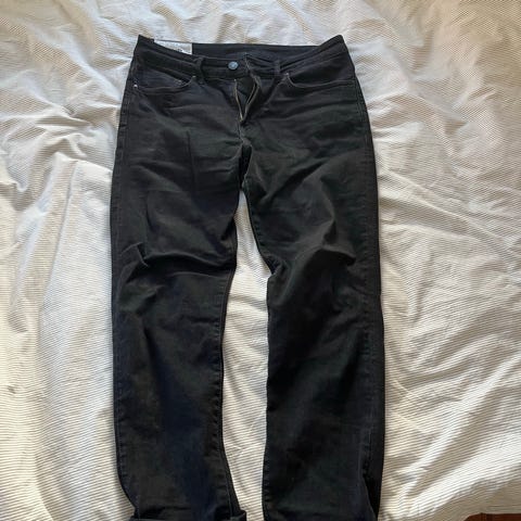 H&M jeans loose fit. Selges fordi de er for vide for meg. Har ikke brukt dem mye.