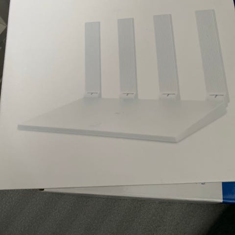 Huawei WS5200 V2 Router med trådløs hastighet opptil 1200Mbps. Enheten har flere antenner for bedre dekning og leveres med strømadapter. Modellnummer WS5200 V2, hvit farge, designet for trådløs nettverkstilkobling.