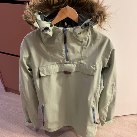 Vindtett anorakk i lys delikat grønnfarge i str L selges. Kan strammes nederst