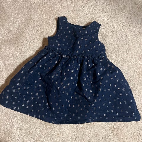 Pen kjole, f.eks. til jul. Str 92. Polarn O Pyret. Mørkeblå med hvite prikker