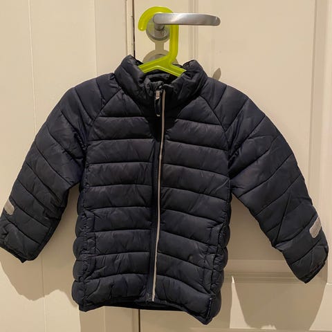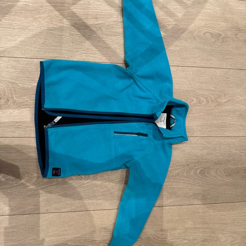 Polarn O. Pyret PO.P Weatherpro barnejakke i størrelse 104 for gutt. Jakken er blå og laget med vanntett materiale med 10 000 mm vannmotstand og vannavstøtende overflate. Den har fullt tapede sømmer, er pustende (5000 g/m2/24t), vindtett og har slitesterk polstring med 80 % resirkulert materiale. Fôret er også resirkulert. Jakken har hette med avtagbar pelskant og er designet for å gi beskyttelse mot værforhold. Har et lite merke under venstre arm som er sydd.