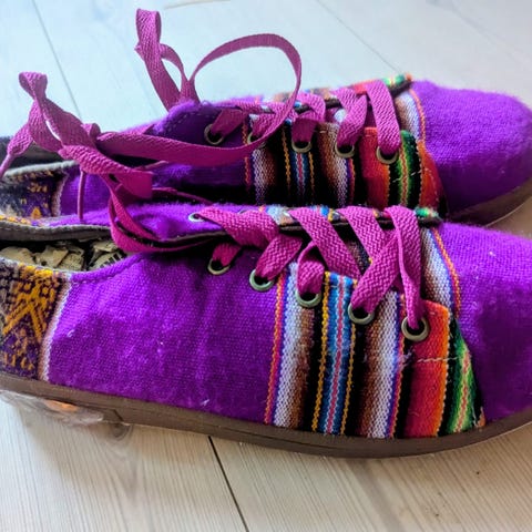 Pensko i burgunder rød skinn, dame 39. Skoene har lisser og en såle med mønster for bedre grep. Passer til formelle og semi-formelle anledninger.