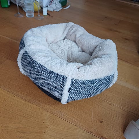 Deilig seng med memory foam i puten. Trekket er i et stilrent lin-utseende stoff. Puten er vendbar og har pus på den ene siden. Sengen er fylt med resirkulert materiale. Puten og sengen kan vaskes separat i maskin på 30 grader.