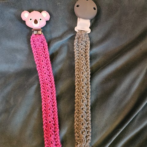 Smokkholder i makrame. Har brukt drops Paris garn. Dette er godkjent for bruk til baby. Selve båndet er 22cm og løkka kommer itillegg.
