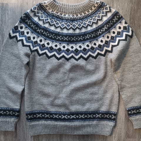 H&M L.O.G.G. strikkegenser i bomull og alpakkaull. Genseren har et fint mønstret design rundt halsen 💙