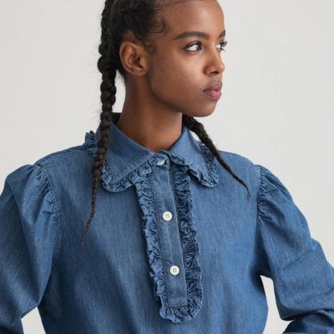GANT oversized skjorte, anorakk inspirert med 70-talls krave og brystlomme.