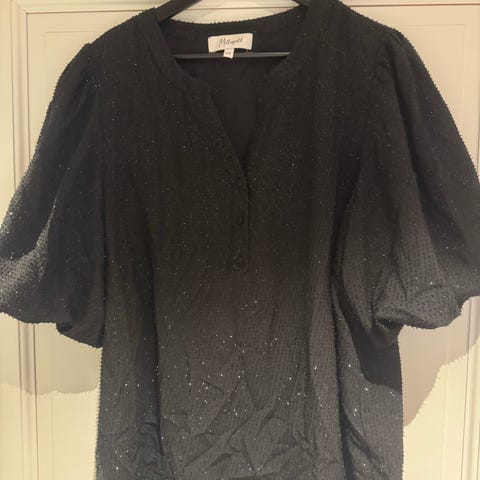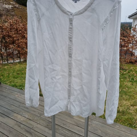 Ny Mellowfield bluse i sateng, kortermet, hvit/beige/grå-aktig farge. Ny av året, kjøpt på VIC i høst for kr 699. Med lapp/ubrukt.