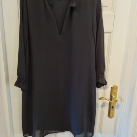 Kjole i størrelse 44 for kvinner. Kjolen har svart basefarge med blomstermønster i flere farger. Materialet og passformen er tilpasset hverdagsbruk. Cubus
