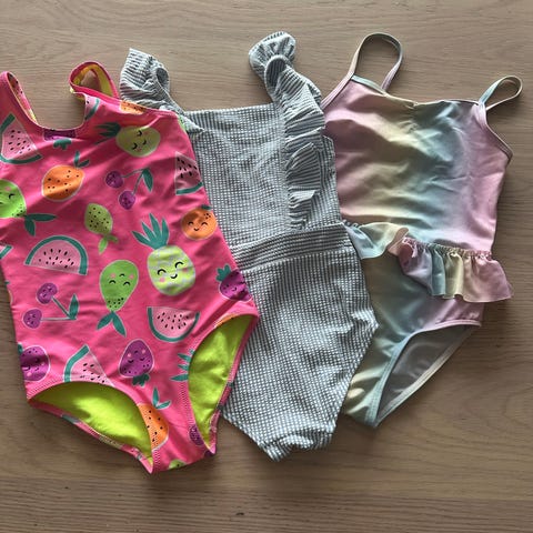 Reflex barneklær i størrelse 86, flerfarget og unisex. Inkluderer en langermet drakt med mønster, samt to badedrakter med forskjellige farger og mønstre. Laget for barn, egnet for ulike anledninger.