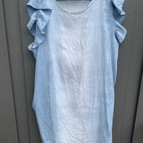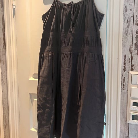 Lin sommerkjole m bomullsfelt på rygg. Ballongform på skjørtet.