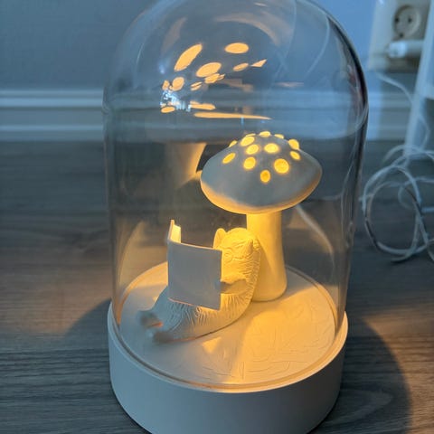 Nattlampe for barn, både lyset på uglem og ringen rundt kan justeres etter ønske. Følger med ledning, men man kan også bruke batteri.