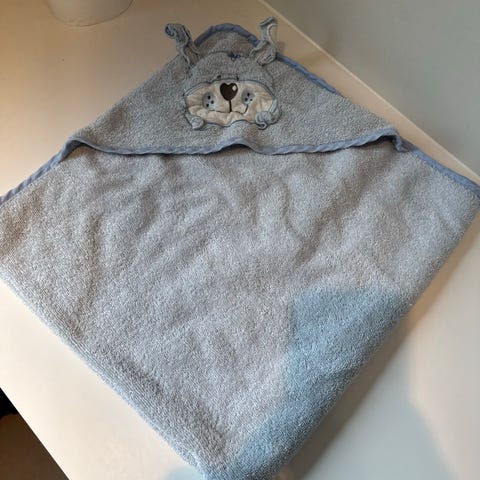Veldig mykt og godt kosepledd med hette. Farge blå.