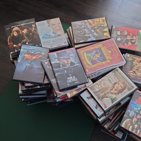 Samling av DVD-filmer med ulike titler og sjangre. Inkluderer filmer som The Matrix, Air Force One, Yes Man, The Hangover, Robin Hood, Inception, Terminator, og flere. Passer for filminteresserte som ønsker et variert utvalg av spillefilmer på DVD.