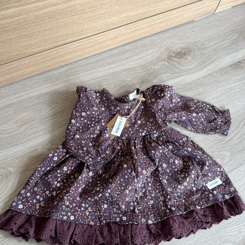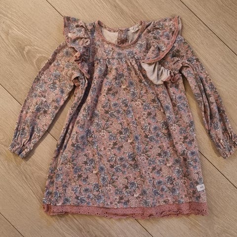 Newbie Blomstret Barnekjole i størrelse 80 for jente. Kjolen har flerfarget blomsterprint og er laget for barn i denne størrelsen.