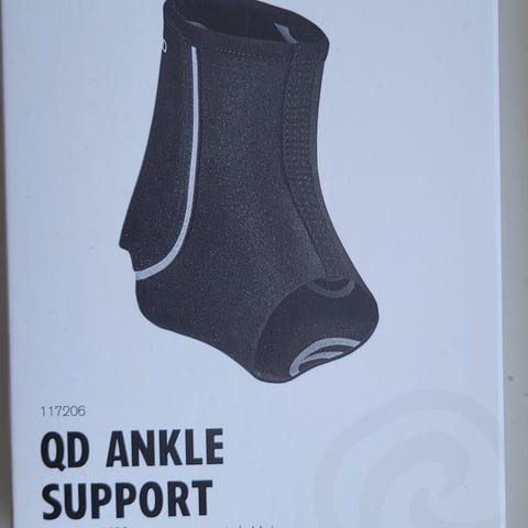 Ubrukt Futuro ankelstøtte. Størrelse medium passer til de med ankel omkrets 20,3 - 22,9 cm (måles over knokkelen). Kan brukes både på venstre og høyre fot.
