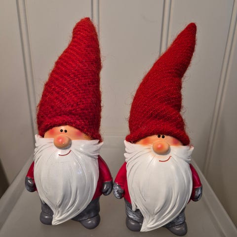 2 søte gnomer med glitter juletre lue , høyde 29 og 30 cm, selges samlet 490kr