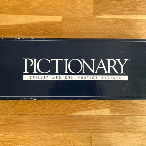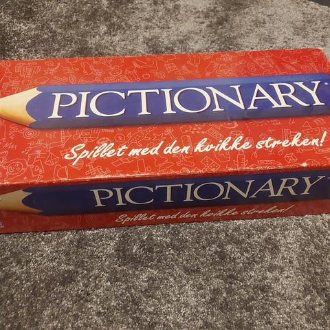 Pictionary Brettspill med fokus på tegning og gjetting. Inneholder spillbrett, kort og tilbehør for flere spillere. Passer for familie og venner, og er designet for underholdning i grupper.