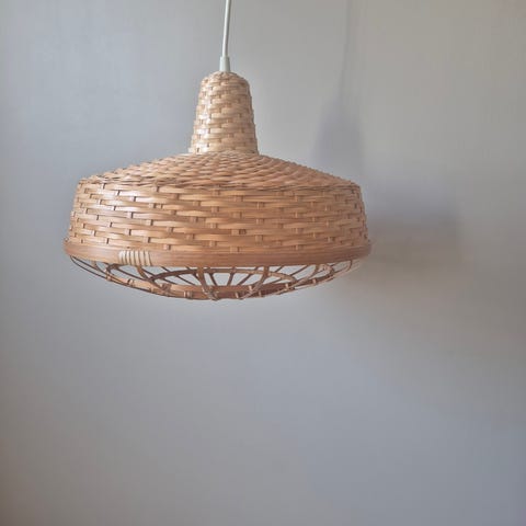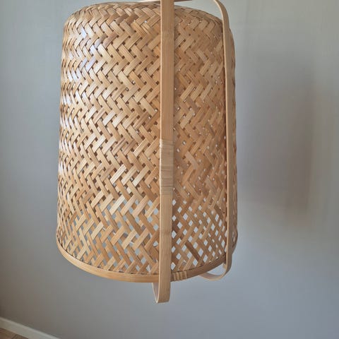 Sinnerlig taklampe fra IKEA i bambus.