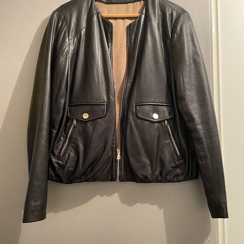 Knapt brukt. Verdens fineste, hanskemyke skinn i pudderbeige. Klassisk bikermodell med en twist. Kostet en formue ny 😱 Flott over sommerkjolen, til chinos eller jeans., passer til de fleste farger. Tror dette er old Céline med Phoebe Philo som designer.