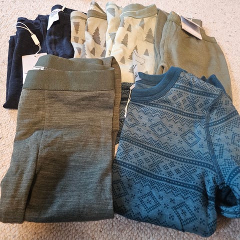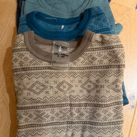 Reflex buksene har noen nupper/flekker, ellers er alt veldig pent brukt. Det er også med en del ullsokker gratis.