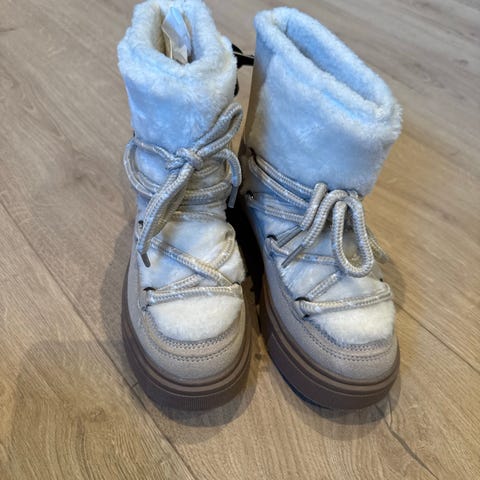 Moon Boot barn støvler i størrelse 35, farge beige. Støvlene har en solid gummisåle med godt grep og er laget for jenter. Materialet er tekstil og syntetisk, designet for å gi varme og komfort i kaldt vær.