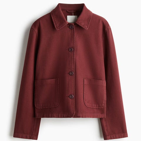 Oversized jacket in cotton-blend twill with a collar and concealed buttons down the front. Dropped shoulders, a buttoned tab at the cuffs and a detachable tie belt at the waist. Large front pockets with a flap. Lined.