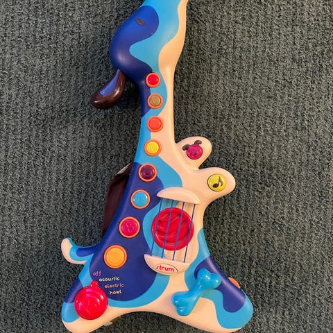 Tekst hentet fra ekstra leker: "Hundegitar med 3 spillmoduser og lydeffekter.