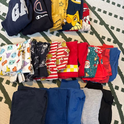H&M og noen andre markerer barneklær i størrelse 116, flerfarget og designet for unisex bruk. Inkluderer ulike plagg som jakker og bukser med forskjellige farger og mønstre, egnet for barn. Materialene varierer, og plaggene er tilpasset barn i denne størrelsen.