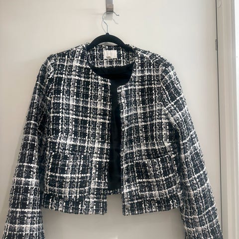 Maskinstrikket blazer fra H&M i størrelse M.