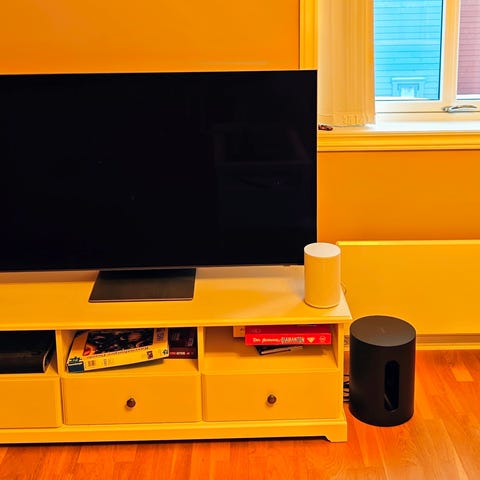 Her har du alt du trenger av tilkoblinger og enkel bruk, Bluetooth, kablet hvis du ønsker eller trådløst mellom de to høyttalere.