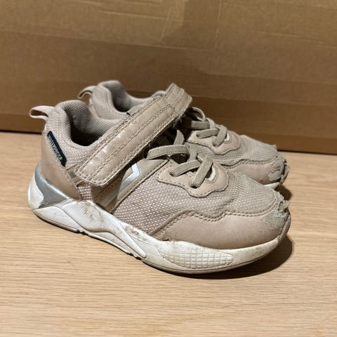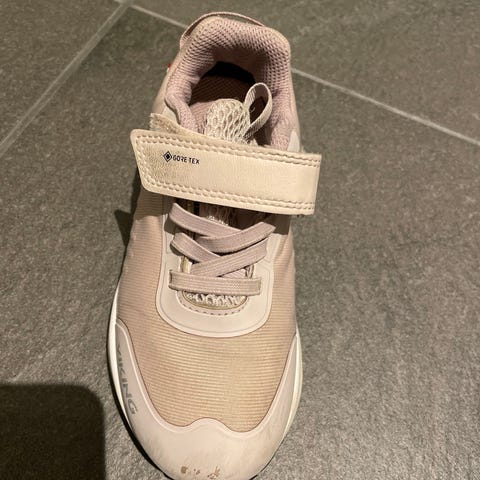Gore-tex joggesko til barn selges. Brukt av ett barn. Lite slitasje men lillafargen har blitt litt gråere. Disse skoene kan vaskes i maskinen, og de fikk en runde i den nå før salg.