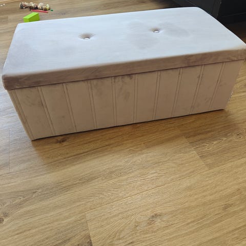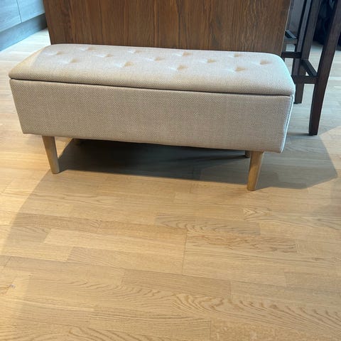 Benk med oppbevaring selgast, som ny- lite brukt, står berre og støva ned på garasjeloft.
