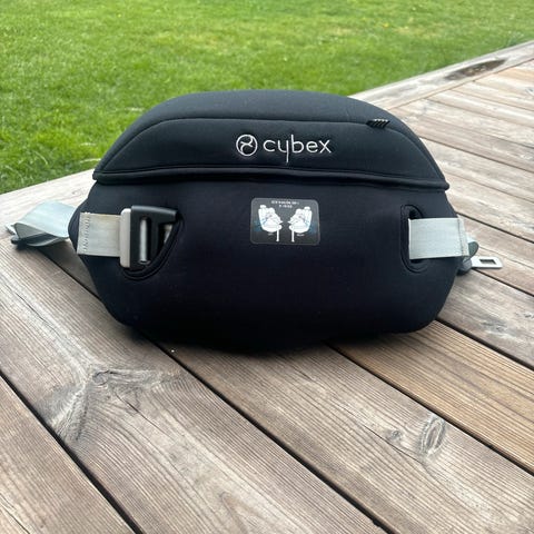 Praktisk reisebarnestol fra Beemoo med skulderreim. Festes til vanlige stoler slik at barnet sitter høyere. Lomme i framkant. Plass til lagring i setet.