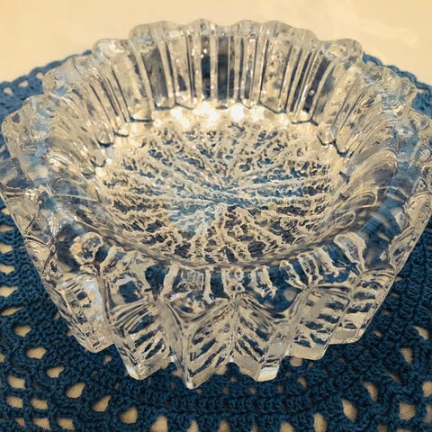 6 stk.Heklet brikker m/ glass på innsiden.