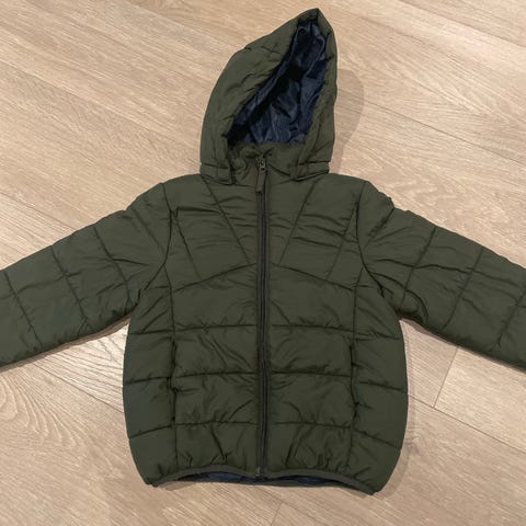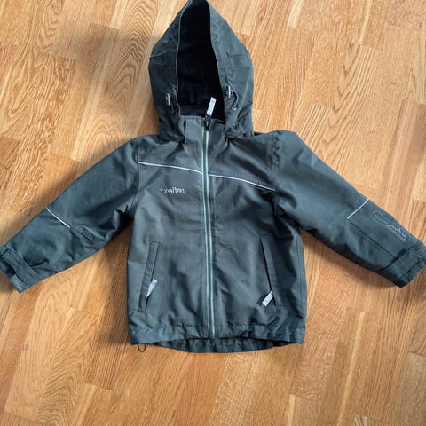 Reflex barnejakke i størrelse 110, grønn farge, unisex. Jakken har hette og glidelås foran. Den er foret med et mykt, isolerende materiale som gir varme. Jakken er egnet for barn og kan brukes i kaldt vær.