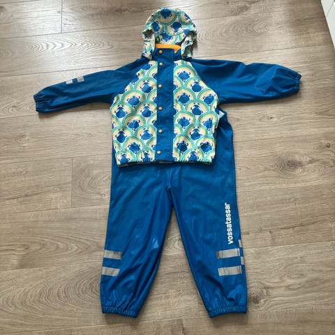 Reflex regnsett i oransje/rustfarge, størrelse 92, egnet for både gutter og jenter. Settet består av jakke og bukse laget av vannavvisende materiale med reflekser for økt synlighet. Buksen har elastiske fotstropper og forsterkede knær for ekstra slitestyrke.