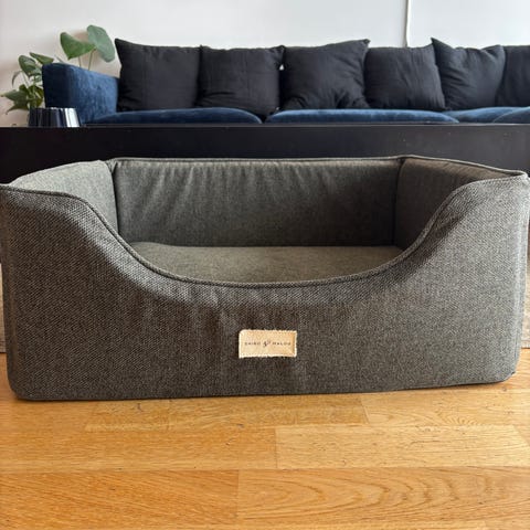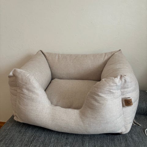 Bozami hundeseng i grått stoffmateriale med en størrelse på cirka 60 cm. Sengen har myke kanter og en avtagbar pute, egnet for små til mellomstore hunder.