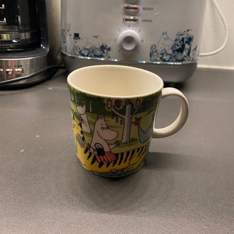 Mummidagen 2025. Arabia Moomin kopp med Mummi motiv i fargerik design. Laget av keramikk, egnet for daglig bruk i kjøkkenet. Passer for servering av varme og kalde drikker. Selges 500 kr pluss frakt hvis den skal sendes. Jeg bruker ikke fiks ferdig da det tar tid før jeg får pengene.