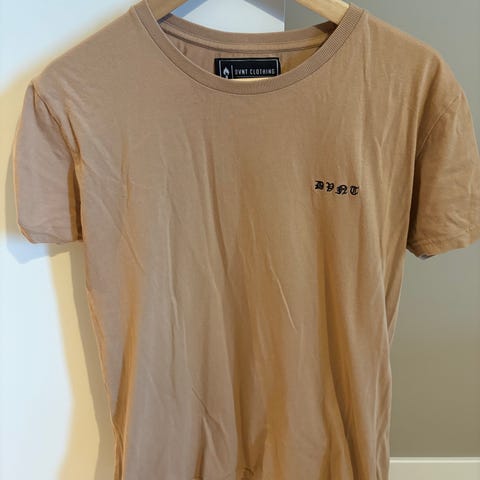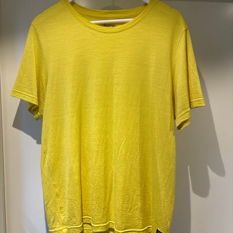 T-skjorte i størrelse M, gul farge. Laget av mykt materiale med rund hals og kort erm. Passer til menn.
